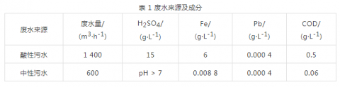 鈦白粉生產(chǎn)過(guò)程中排出的工業(yè)廢水主要分酸性廢水及中性廢水,其成分及水量詳見(jiàn)表 1.